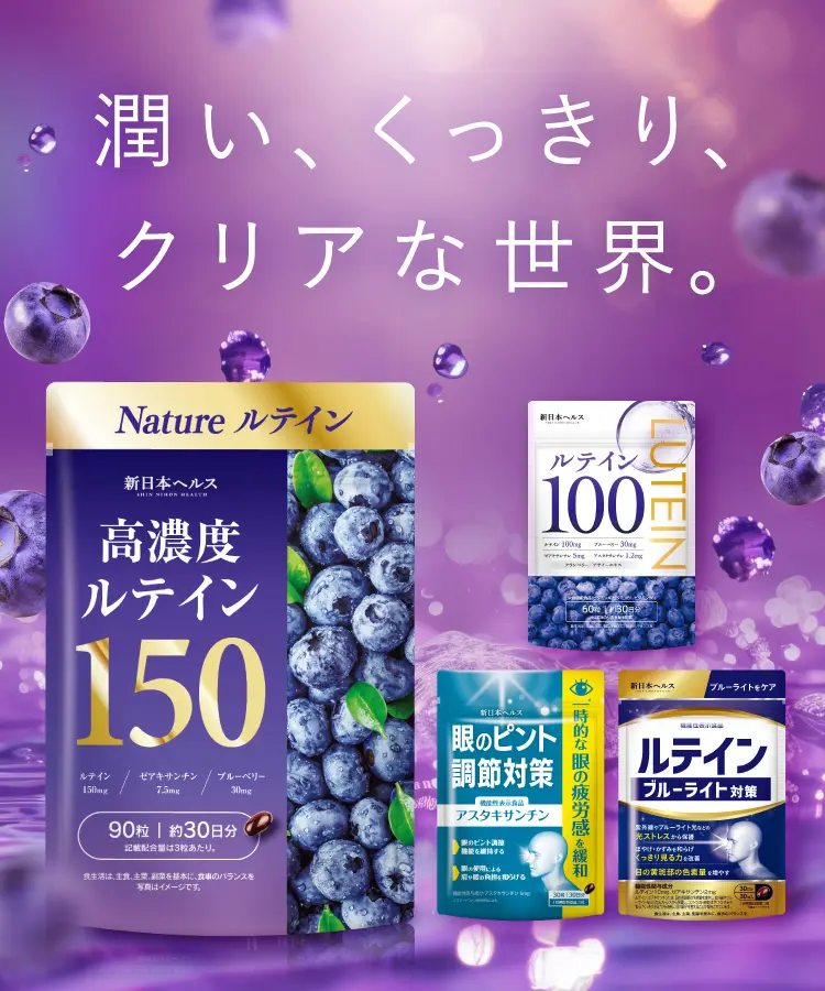 ルテイン150mgと高濃度配合。加えてブルーベリー30mg、ゼアキサンチン7.5mg配合し、くっきりな毎日を徹底サポートするサプリメントです。