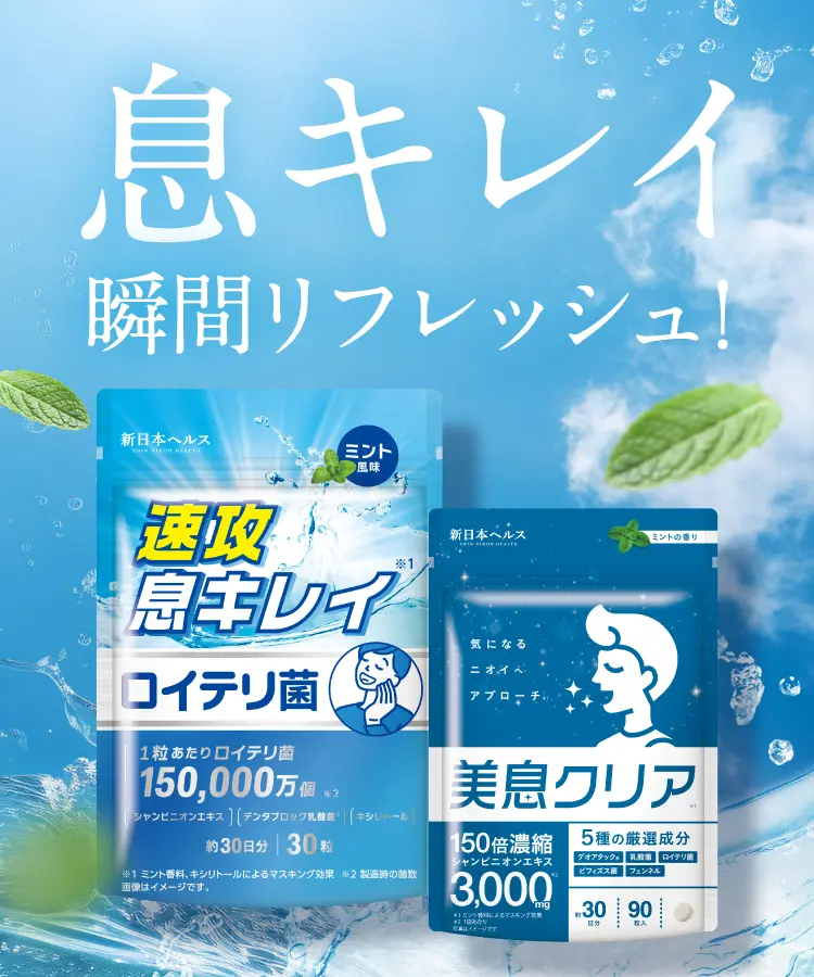 ロイテリ菌15億個、デンタブロック乳酸菌120億個を配合した、息をリフレッシュできるサプリメントです。水なしで手軽に飲むことができます。