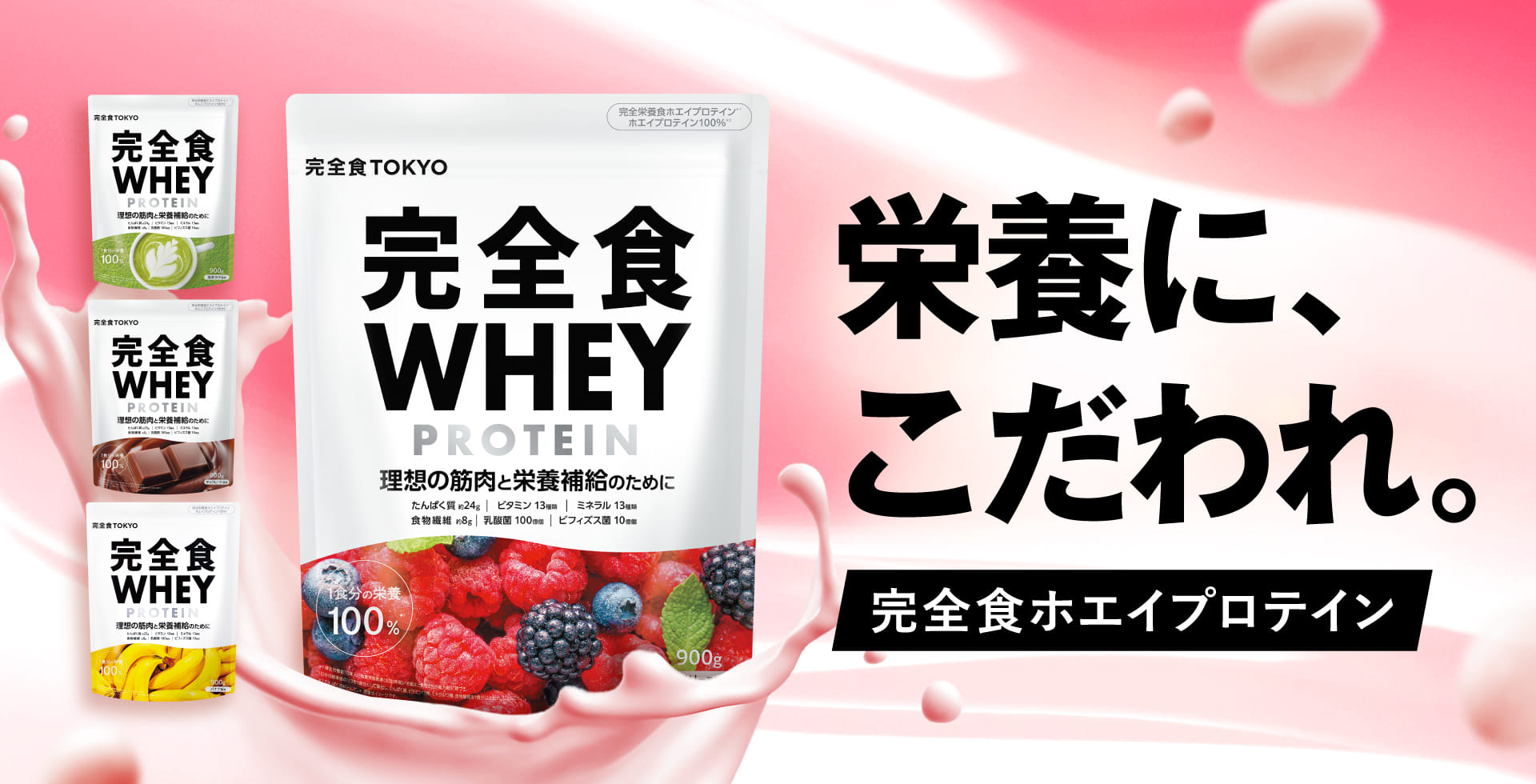 必要な栄養これ1杯で。完全栄養食×ホエイプロテインです。溶けやすい&泡立ちにくさにこだわった独自処方です。