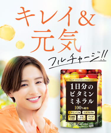 1日の分のマルチビタミン12種とマルチミネラル8種を配合し、乳酸菌も配合した美と健康をサポートするサプリです。